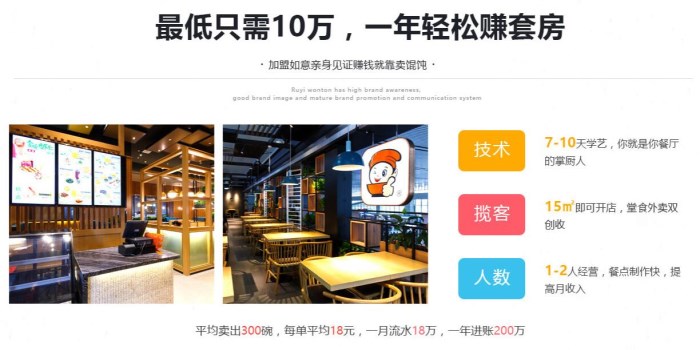 其實,大多數(shù)餐飲小白都要認(rèn)為,開店嘛,不就是找個地方開個門店,打開門做生意,然后等著客戶自己上門,就好了,其實,并不是這樣的。你需要考慮選址、開業(yè)活動、門店管理、人員管理、門店經(jīng)營等。一般靠譜的品牌會教你怎么選址并且做好相應(yīng)的評估,分析出這個地理位置的優(yōu)勢及弊端,以及協(xié)助辦理各種證照,開業(yè)時幫你策劃各種開業(yè)活動,吸引客流量,迅速的幫你把門店人氣帶動起來,日常運(yùn)營中碰到什么問題也會在 時間幫你處理!而如果你自己做,這些全部要自己去摸索,到時候時間成本不比加盟費(fèi)少哦,關(guān)鍵是勞心勞力。