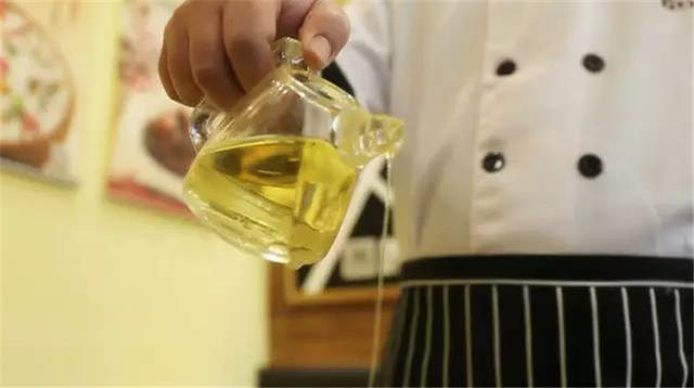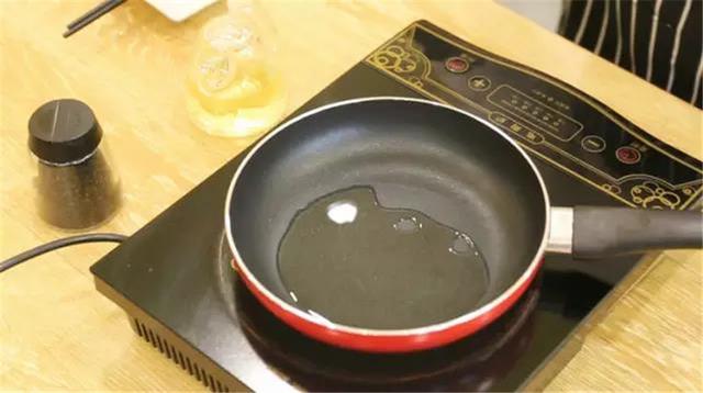 ④開始進入煎餛飩階段,首先在平底鍋倒入適量的色拉油,量不需要多,能鋪平鍋底就行;